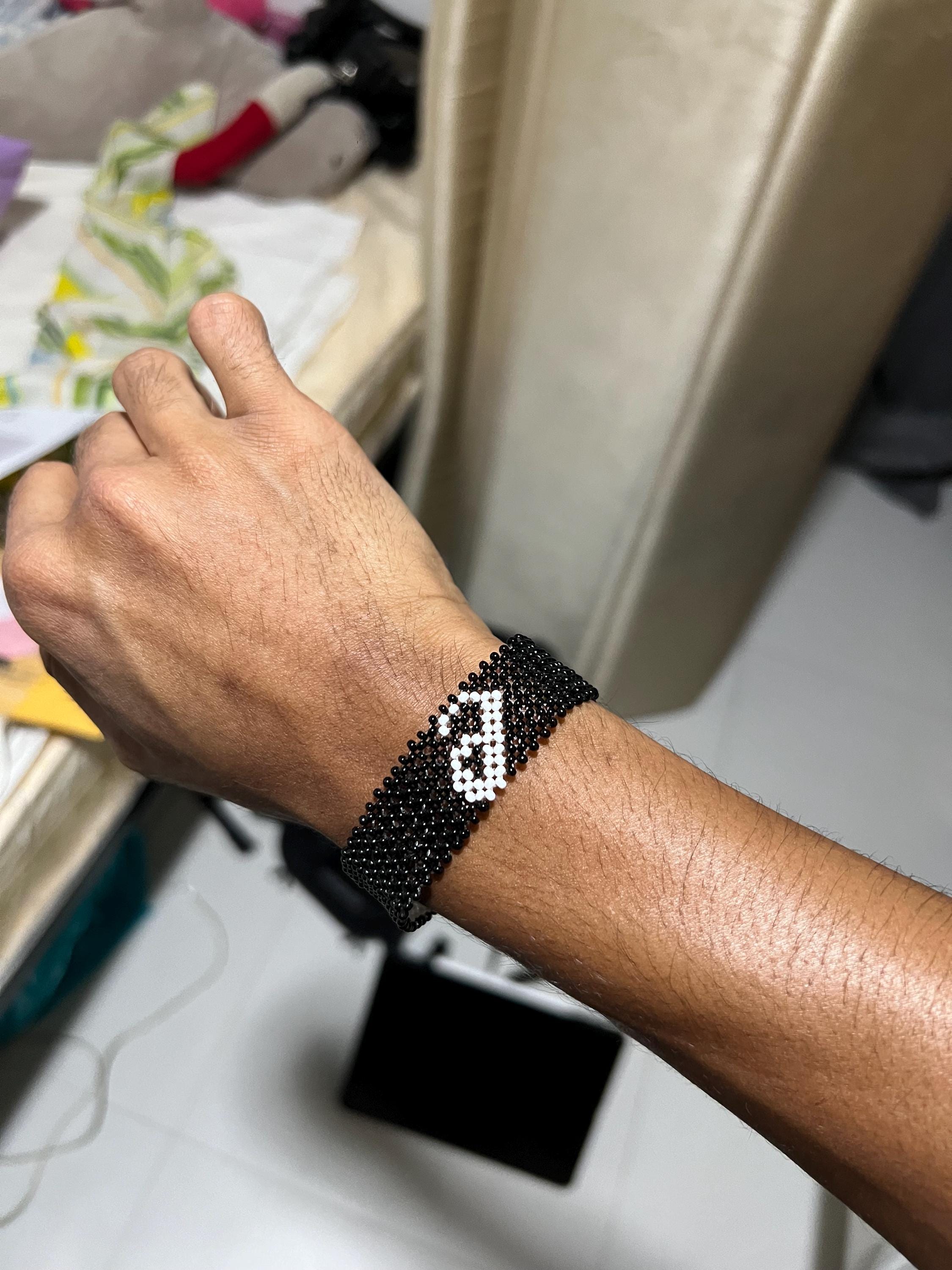 Create your very own personalized name bracelet with any color and size you want. This bracelet is intricately hand woven to produce a design resembling the colors and personalization of your choice. The thread used in knitting is water resistant allowing you to wash dishes, take a shower and even go swimming with your bracelet on. Woven with strong non-elastic thread that is durable and does not break easily.