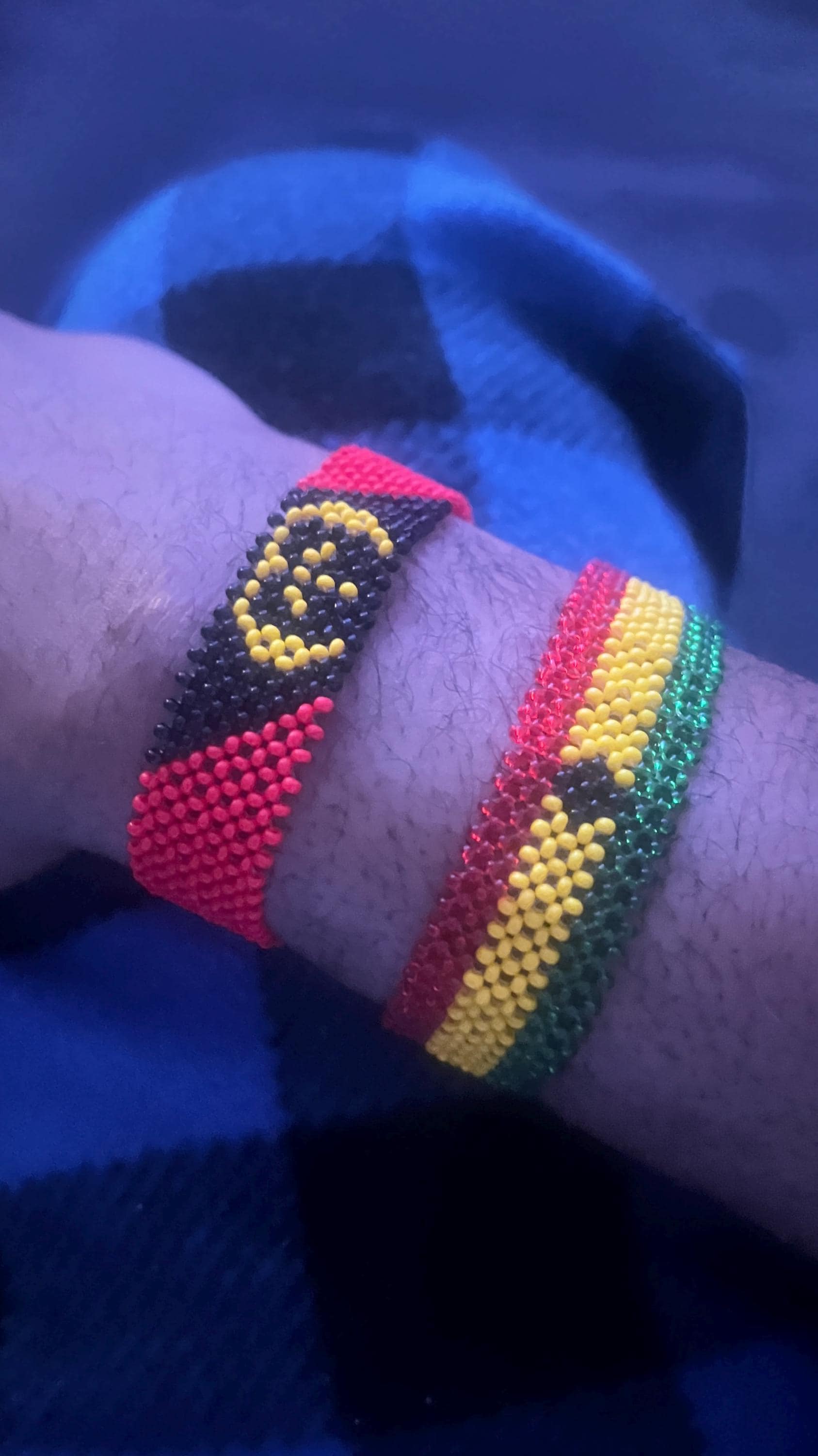 Our African American heritage bracelet is made with beads that are intricately hand woven to produce a design resembling the flag colors and personalization of your choice. The thread used in knitting is water resistant allowing you to wash dishes, take a shower and even go swimming with your bracelet on. Woven with strong non-elastic thread that is durable and does not break easily.